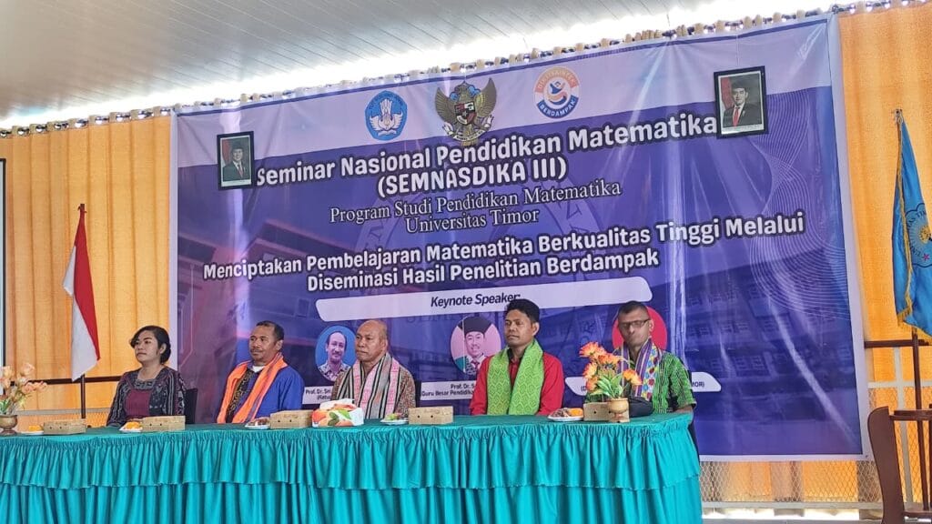 Sebagai wadah untuk mendiseminasikan hasil penelitian pendidikan matematika yang inovatif dan aplikatif dalam penerapannya dalam proses pembelajaran sehari-hari, Program Studi (Prodi) Pendidikan Matematika Fakultas Keguruan dan Ilmu Pendidikan (FKIP) Universitas Timor (Unimor) telah melaksanakan Seminar Nasional Pendidikan Matematika (Semnasdika) III Tahun 2025 bertajuk “Menciptakan Pembelajaran Matematika Berkualitas Tinggi Melalui Diseminasi Hasil Penelitian Berdampak” pada Kamis (9/10/2025) lalu di Aula Lt.3 Gedung Kuliah Fapertasainkes.