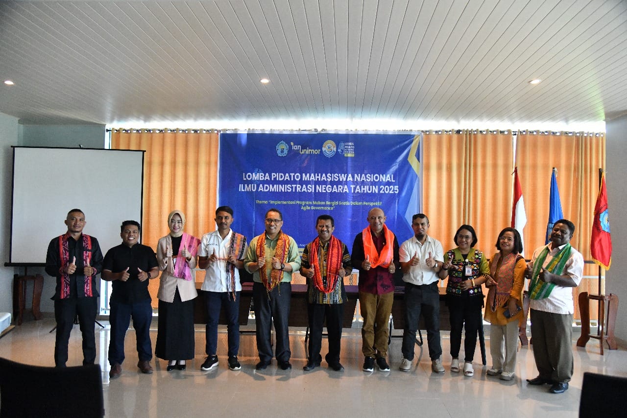 Unimor, Kefamenanu – Program Studi (Prodi) Ilmu Administrasi Negara Fakultas Ilmu Sosial dan Ilmu Politik (Fisipol) Universitas Timor (Unimor) sukses menyelenggarakan Lomba Pidato Mahasiswa Tingkat Nasional Tahun 2025 dengan tema “Implementasi Program Makan Bergizi Gratis dalam Perspektif Agile Governance“, bertempat di Aula Lt. 3 Gedung Kuliah Faperta-SainKes Unimor, Kamis (20/11/2025). Acara yang dilaksanakan secara luring ini dihadiri oleh Wakil Rektor Bidang Kemahasiswaan dan Alumni, Wakil Dekan Bidang Akademik Fisipol, Koordinator Prodi Ilmu Administrasi Negara, Koordinator Prodi Ilmu Pemerintahan, narasumber , dewan juri, dosen Prodi Ilmu Administrasi Negara serta seluruh mahasiswa peserta lomba pidato dan mahasiswa Prodi Ilmu Administrasi Negara.